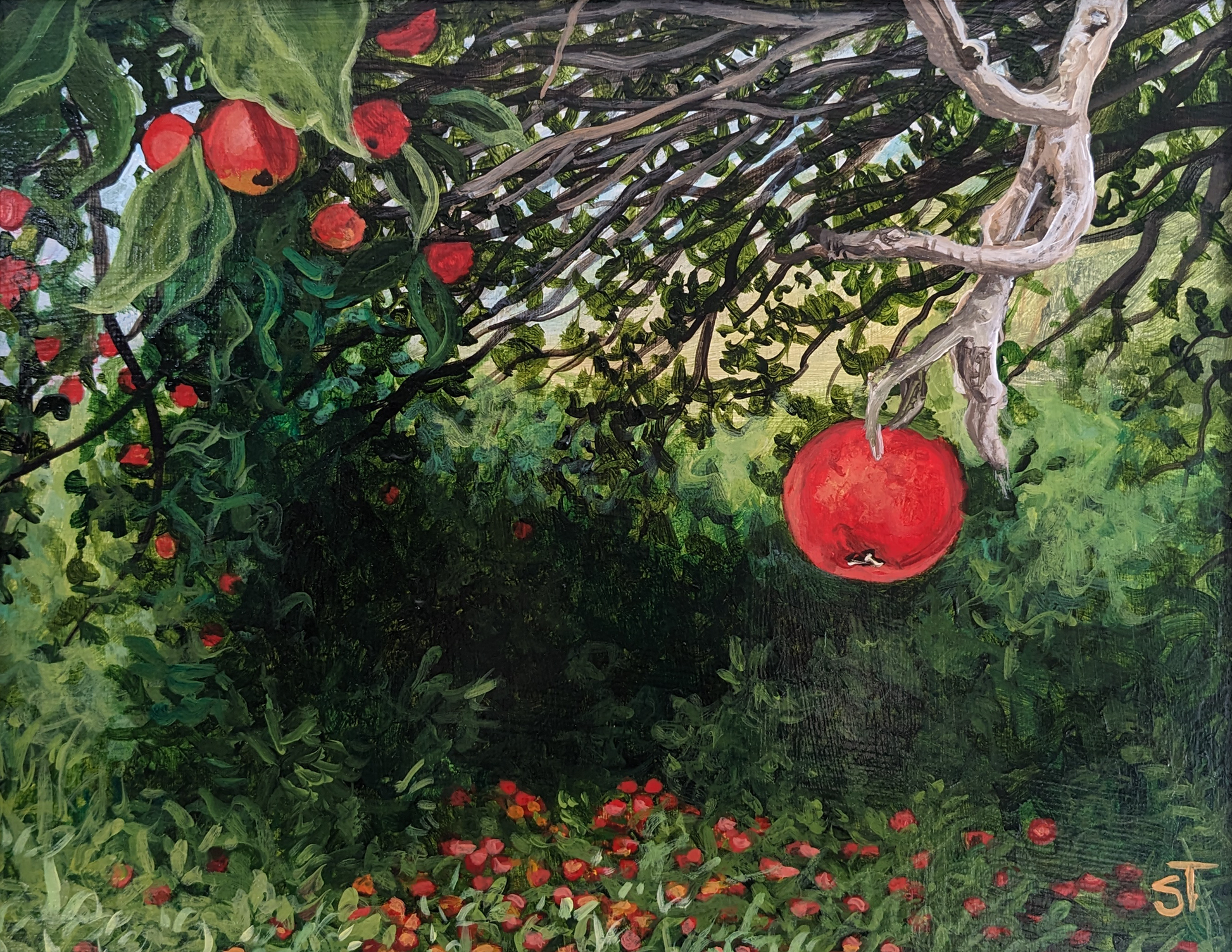 Celebrate the bounty of Maine's orchards with our vibrant acrylic painting print featuring a wild apple tree laden with bright red apples. This stunning artwork captures the essence of autumn's abundance, showcasing the tree's gnarled branches and the vivid contrast of ripe fruit against lush green leaves. Perfect for adding a touch of seasonal charm to any space, from kitchen walls to cozy dining areas, this print invites a sense of rustic beauty and harvest spirit. Embrace the richness of Maine's landscapes with this captivating piece that brings the essence of an orchard in full bloom right into your home decor.